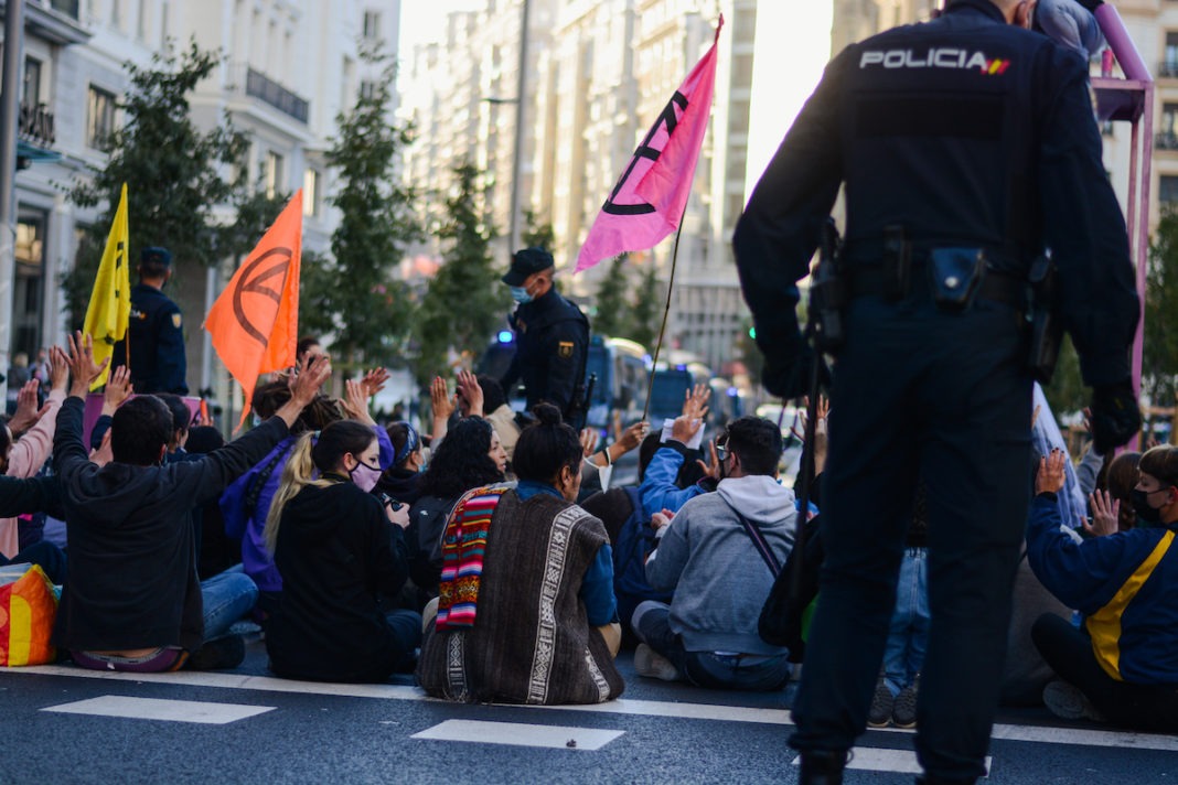 Más de 150 ciudadanos del movimiento climático Extinction Rebellion han cortado el tráfico en la Gran Vía de Madrid durante una hora y quince minutos para exigir que en la cumbre del clima de Glasgow se llegue a los acuerdos necesarios para frenar la crisis climática y estos se ejecuten de tal manera que no se convoquen nuevas cumbres.