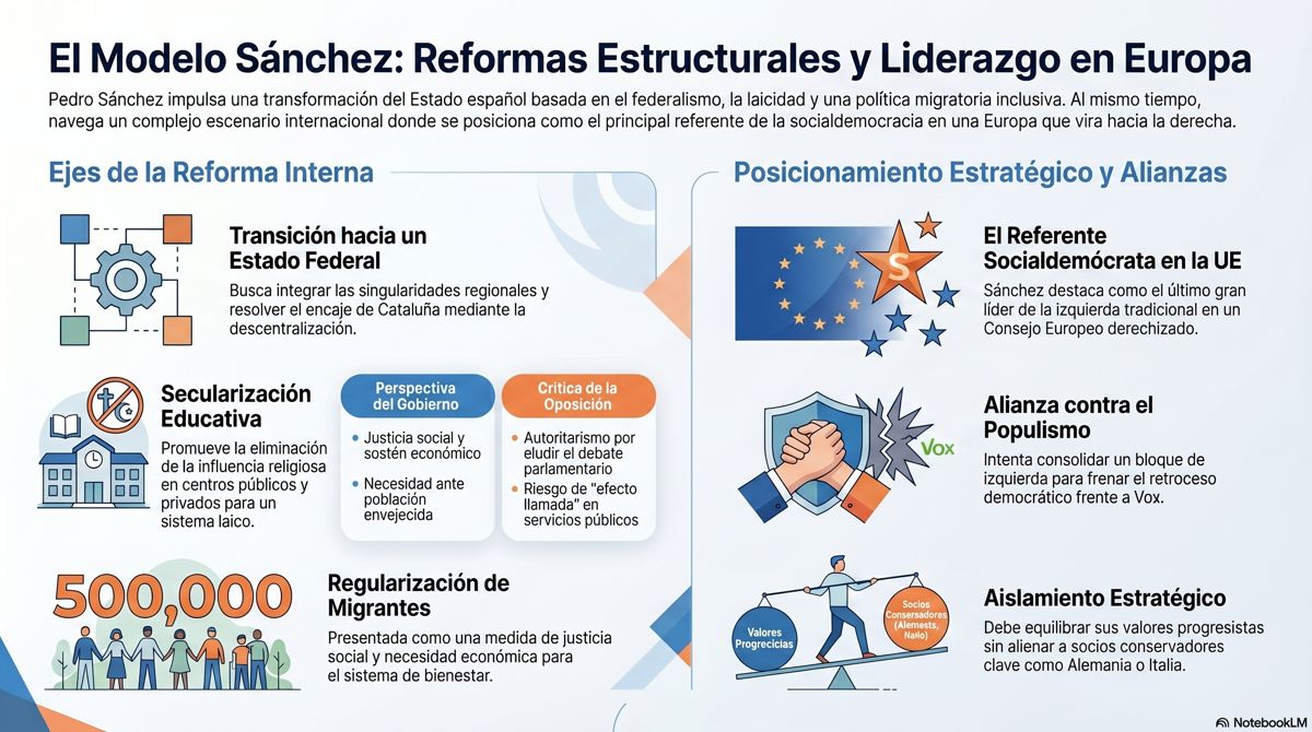 Esta etiqueta de weltstar se sustenta no solo en su retórica, sino también en acciones de gobierno de alto impacto mediático, como la regularización masiva de más de quinientos mil inmigrantes mediante decreto, una medida que, aunque criticada internamente por su carácter unilateral, ha sido aplaudida por sectores progresistas internacionales como un ejemplo de política humanista.
