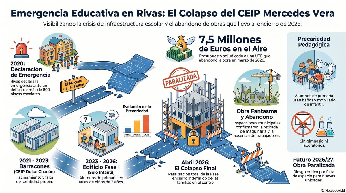 El malestar de las familias de Rivas-Vaciamadrid en abril de 2026 es multifactorial. No se trata únicamente de un retraso en la entrega de llaves, sino de una degradación continua de la calidad educativa derivada de la falta de inversión y la mala gestión de los recursos públicos.