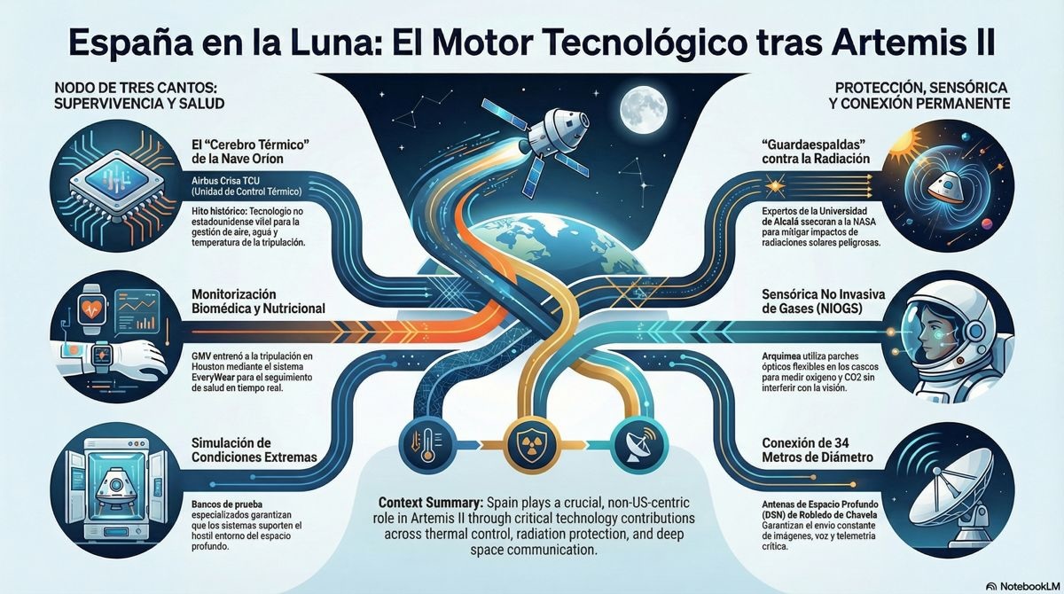 Aunque la UVigo desempeña un papel visible en el seguimiento terrestre, la misión Artemis II cuenta con una participación transversal de la industria aeroespacial española que abarca sistemas críticos de supervivencia y gestión operativa.