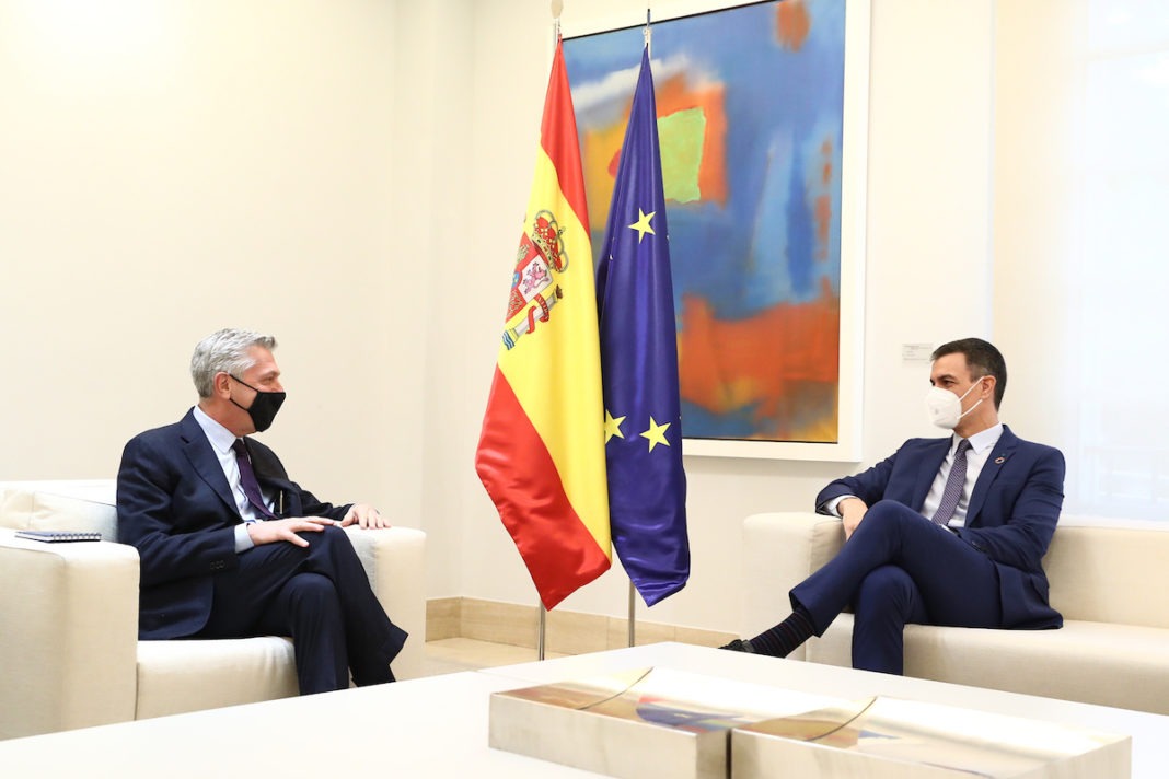 Durante el encuentro, Sánchez destacó que España está trabajando en la actualidad en un Plan de Acción Nacional para la Aplicación del Pacto Global sobre los Refugiados y le reiteró el fuerte compromiso de España con el acceso universal a la vacuna contra la COVID-19.