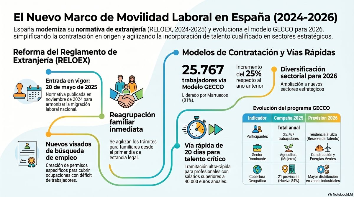 El Gobierno español ha emprendido una ambiciosa reforma del Reglamento de Extranjería (RELOEX) para armonizar los procedimientos nacionales con la Reserva de Talento y otras directivas de migración legal.