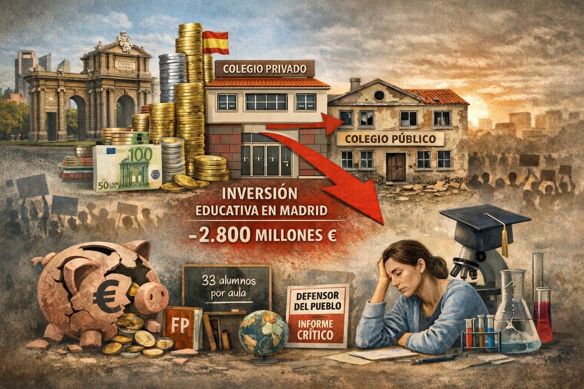 La educación pública madrileña atraviesa uno de los momentos más delicados de las últimas décadas. En una comunidad que lidera los principales indicadores económicos del país, el sistema educativo se ha convertido en un espacio de conflicto permanente, marcado por la infrafinanciación, la desigualdad y una creciente desafección social.