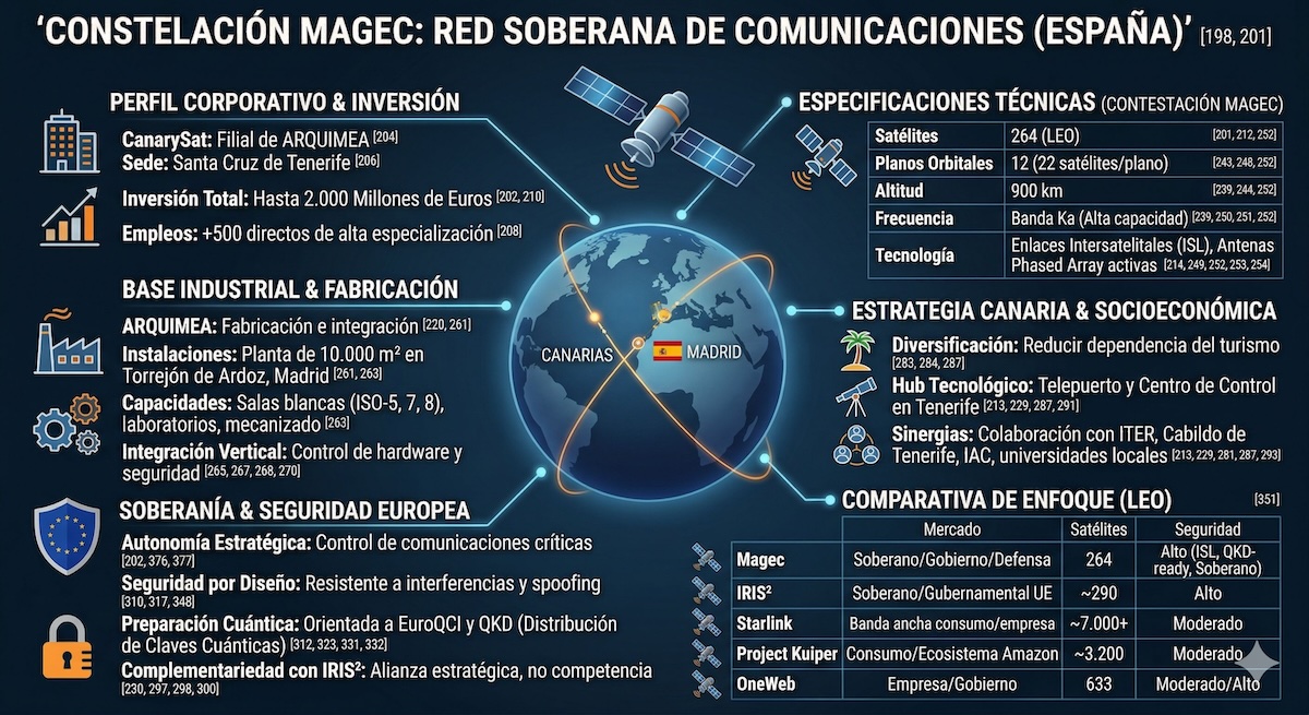 Este análisis examina las implicaciones multifacéticas de la constelación Magec, desde su arquitectura técnica y sus cimientos industriales hasta su papel dentro del marco de seguridad europeo más amplio y su impacto económico en las Islas Canarias.