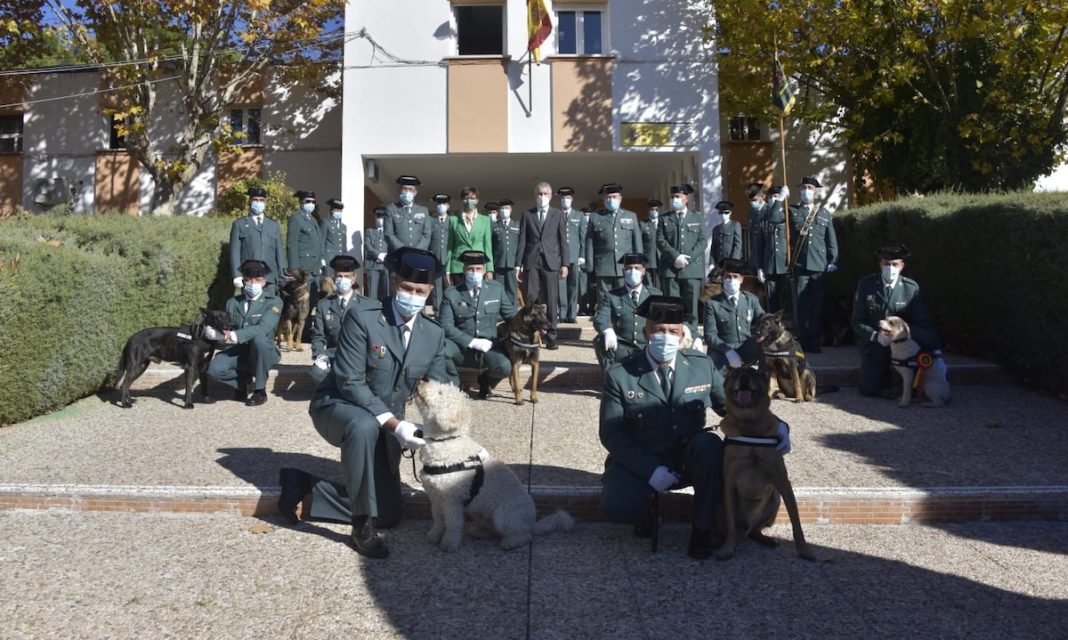 El ministro del Interior, Fernando Grande-Marlaska, junto a la directora general de la Guardia Civil, María Gámez, ha impuesto este 15 de noviembre 2021 las primeras condecoraciones a agentes caninos del cuerpo en un acto celebrado en las instalaciones de su Servicio Cinológico en el Pardo (Madrid), con el que la institución reconoce la importancia que ha adquirido el uso operativo de los canes al adaptarse a las nuevas formas de criminalidad.